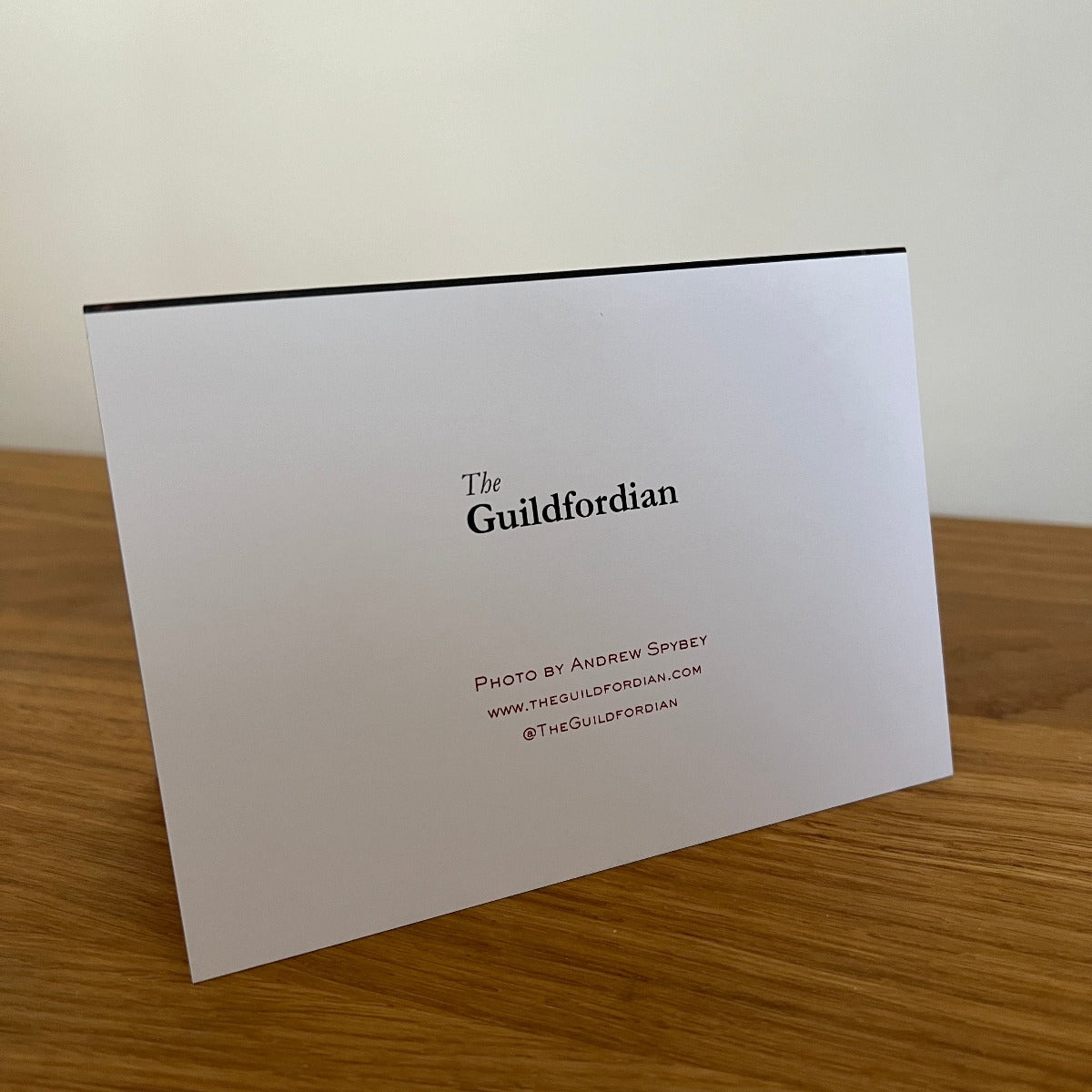 On the rear of the card is The Guildfordian logo together with the caption Photo by Andrew Spybey. www.theguildfordian.com @TheGuildfordian.
